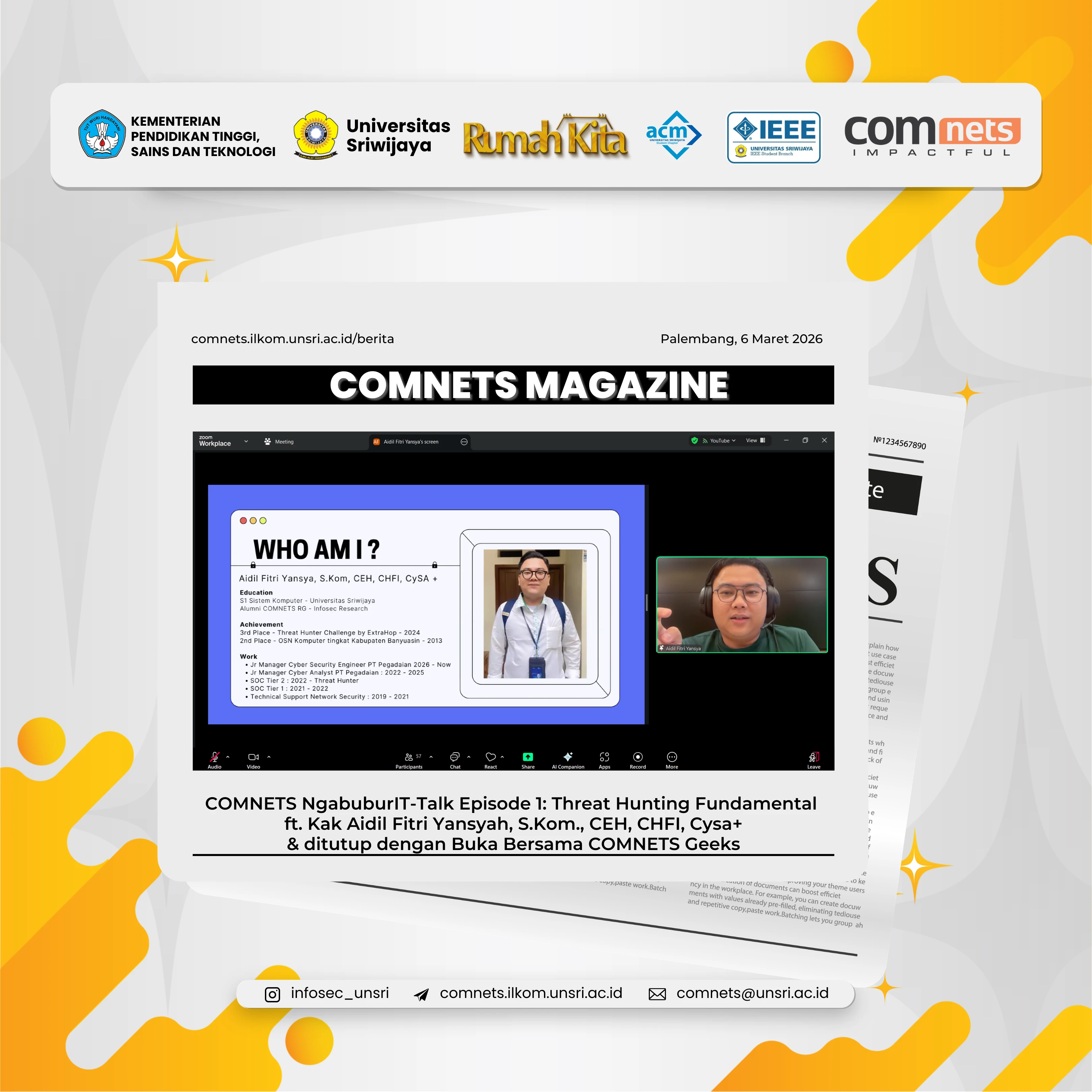 Lebih lanjut, beliau juga menyoroti peran Security Operation Center (SOC) sebagai garda terdepan pemantauan. Alat keamanan canggih seperti Intrusion Prevention System (IPS) maupun Web Application Firewall (WAF) akan menjadi sia-sia jika alert nya tidak ditindaklanjuti secara real-time oleh tim operasional.