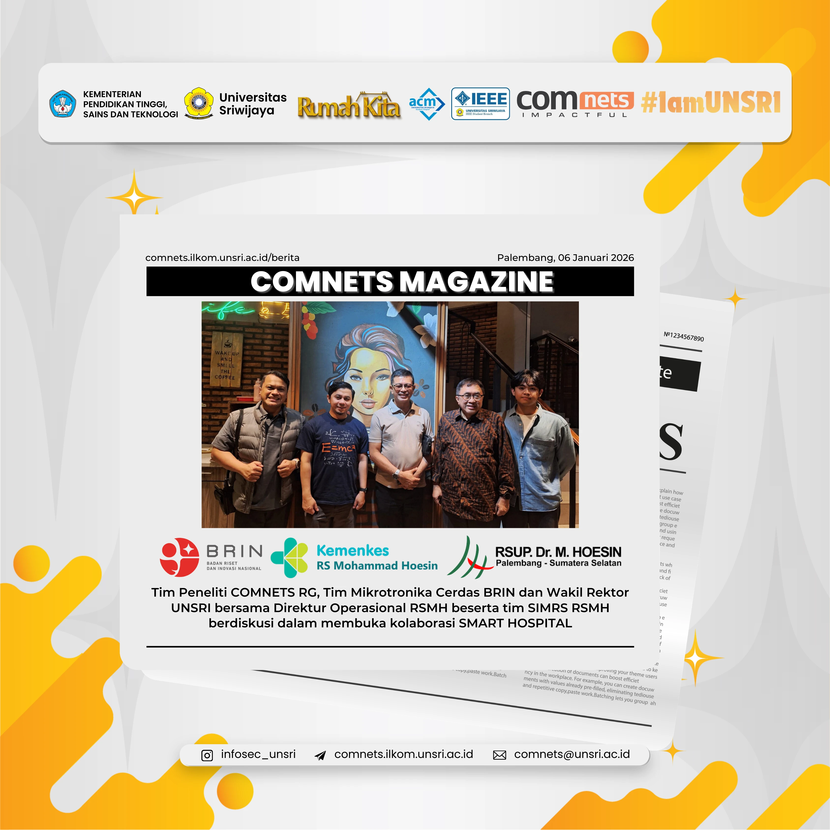 Sebuah langkah kolaboratif berskala nasional baru saja diinisiasi untuk merancang lompatan teknologi kesehatan masa depan, yakni perwujudan ekosistem Smart Hospital. Pertemuan dan diskusi strategis ini mempertemukan tokoh-tokoh kunci dari tiga institusi besar. Dari pihak akademisi, hadir langsung Wakil Rektor Universitas Sriwijaya yang didampingi Tim Peneliti COMNETS RG bersama dengan pakar teknologi dari Tim Mikrotronika Cerdas Badan Riset dan Inovasi Nasional (BRIN).