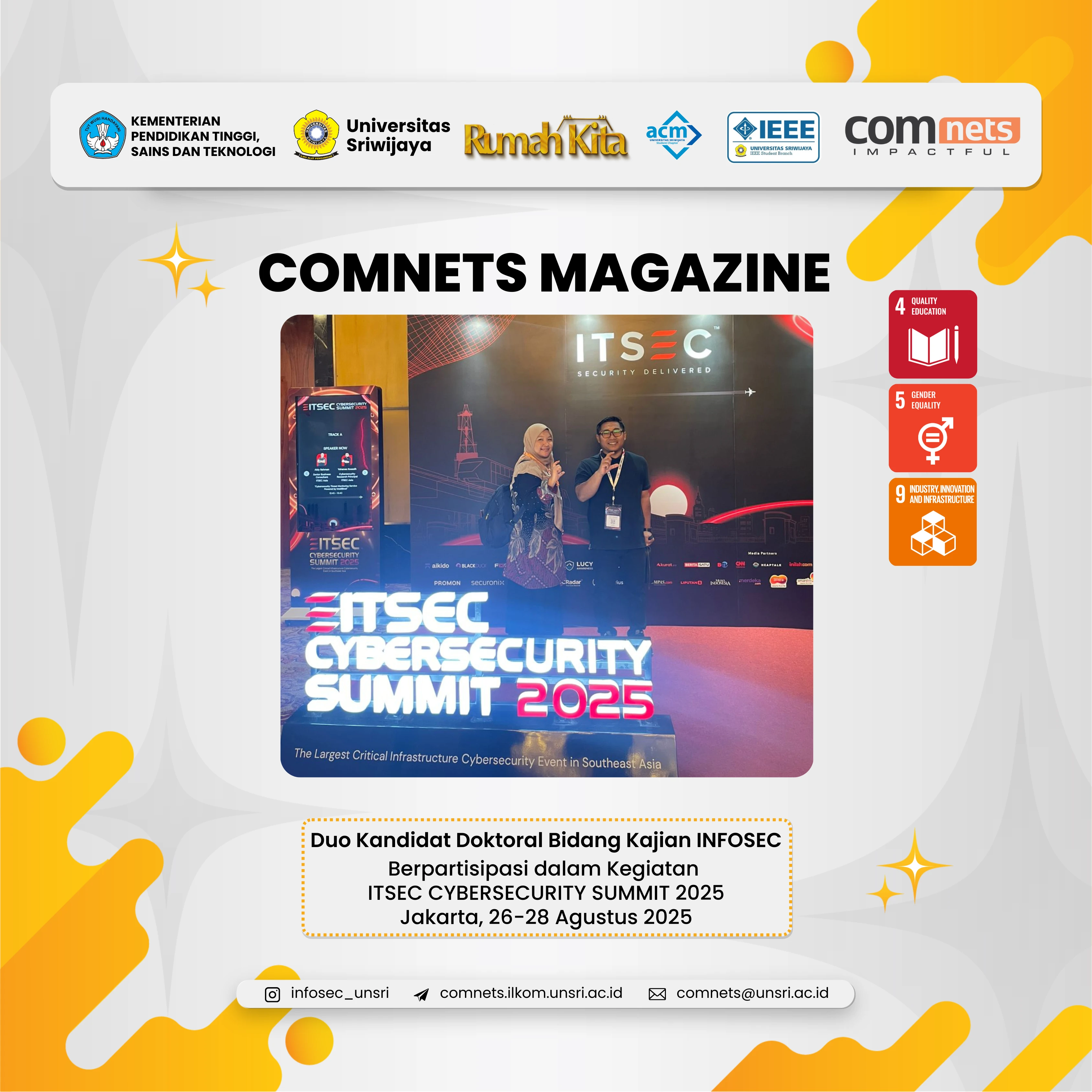 For more information about COMNETS activities and research, please visit our website at comnets.ilkom.unsri.ac.id or follow our Instagram at @infosec_unsri.